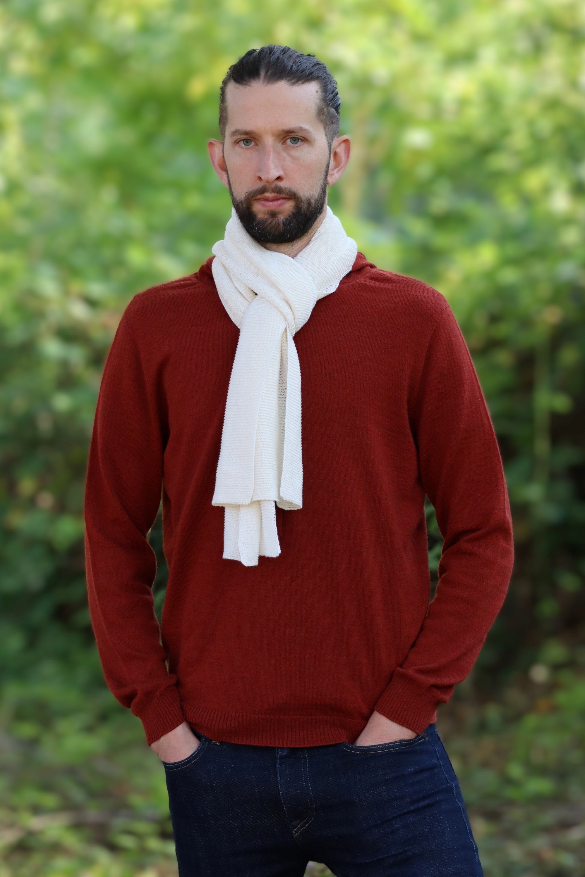 As a result, we produce garments that contain an element of variability in the finish. We embrace those small imperfections as a gauge of the authenticity of our products. Those are inevitable, due to a combination of tying ends of strands of natural yarns together and using individual animals and plants for different batches.