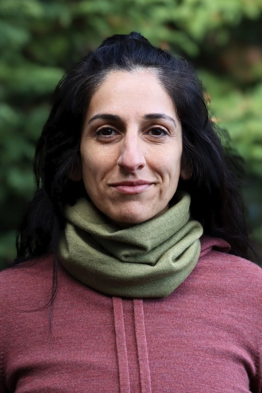 Please note that because we make garments one at a time to order, and because we use 100% natural materials as unprocessed as possible, each garment produced is unique. Not in big ways, but because our yarns are 100% natural, they do not provide the absolute symmetry and repeatability that we have come to expect from a synthetic garment. Our raw materials come from live animals and plants, and we strive to strike a balance between Tech (providing relative scalability) and Nature (minimizing processing).