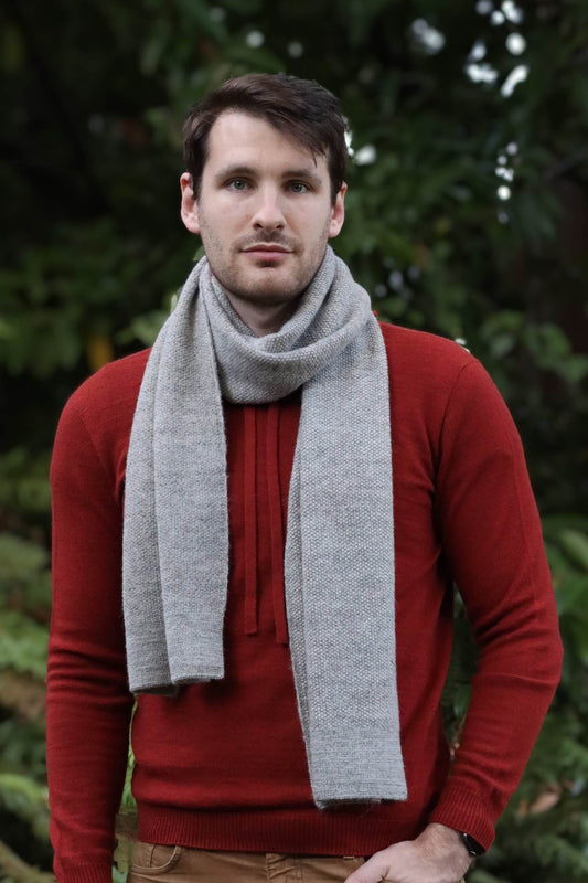 Luxury, extra soft baby alpaca which softly wraps around you. Alpaca is a longer and fiber than wool, which makes it durable but also gives it a very “drapey” aspect that hugs your body in a blanket of warmth and softness. Alpaca has amazing insulation properties and absorbs moisture from the environment.