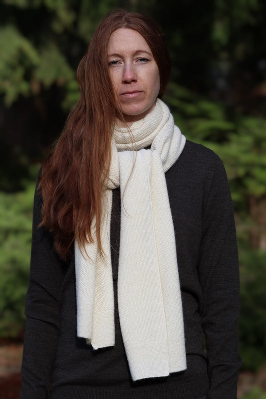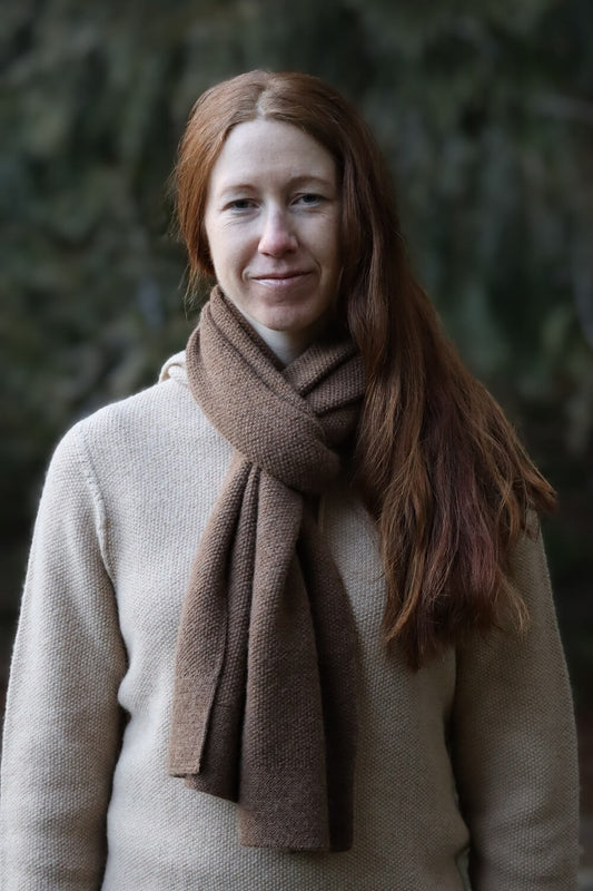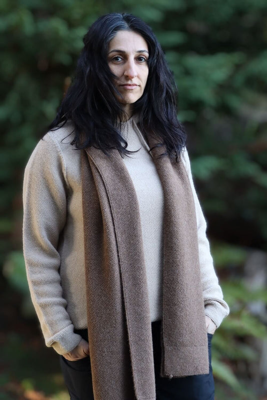 Luxury, extra soft baby alpaca which softly wraps around you. Alpaca is a longer and fiber than wool, which makes it durable but also gives it a very “drapey” aspect that hugs your body in a blanket of warmth and softness. Alpaca has amazing insulation properties and absorbs moisture from the environment.